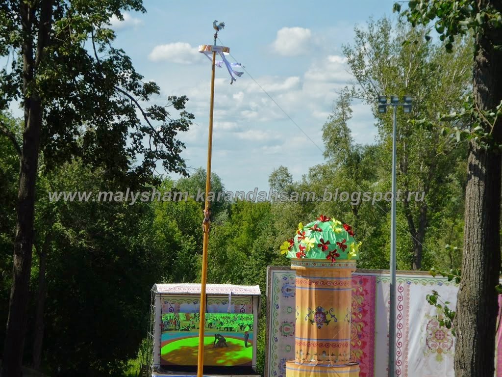 С Сабантуем у меня с детства связаны самые яркие впечатления)) Я с родными и двоюродными сестрами и братьями каждое лето проводила у бабушки в Башкирии. Праздник плуга, так можно перевести название, проходил в деревнях в начале лета, после окончания посевных работ. Перед праздником по деревне проезжала повозка с длинным шестом, управляли красивые, в национальных костюмах парни с гармонью и собирали с каждого двора подарки для праздника-полотенца, платки, отрезы материи и куриные свежие яйца. Выносили подарки обычно хозяева дома, в благодарность ребята играли на гармошке и все танцевали)) Было весело! А потом на следующий день где-то за деревней устраивали праздник! Вот где было веселье-скачки на лошадях, борьба, прыжки в мешках ( я всегда участвовала!), бег с ложках в зубах и яйцом, борьба с мешками сидя на бревне, разбивание горшка с завязанными глазами и многое другое)) А самое увлекательное происходило в конце: в берег реки был вбит параллельно поверхности воды длинный столб. К концу привязан петух ( живой, да простит всех Гринпис)), за которым смельчаки должны были добраться. Столб скользкий, раскачивается и многие добегали до середины и сигали в воду!)) Вот потеха была! Все умирали со смеху)) С праздника я всегда возвращалась с выигранным подарком, а то и не одним) Обычно это был платок на голову, который потом с гордостью носила все лето. Жаль, мои дети не знают, что такое деревня. Но городские праздники тоже радуют своей организацией) Очень красиво оформлено, много тематических площадок, концерты, соревнования и для совсем маленьких деток есть развлечения) И совсем нет пьяных, а спиртное вообще нигде не видела ни в продаже, ни кого либо на руках. Люди реально получают удовольствие от  праздника!